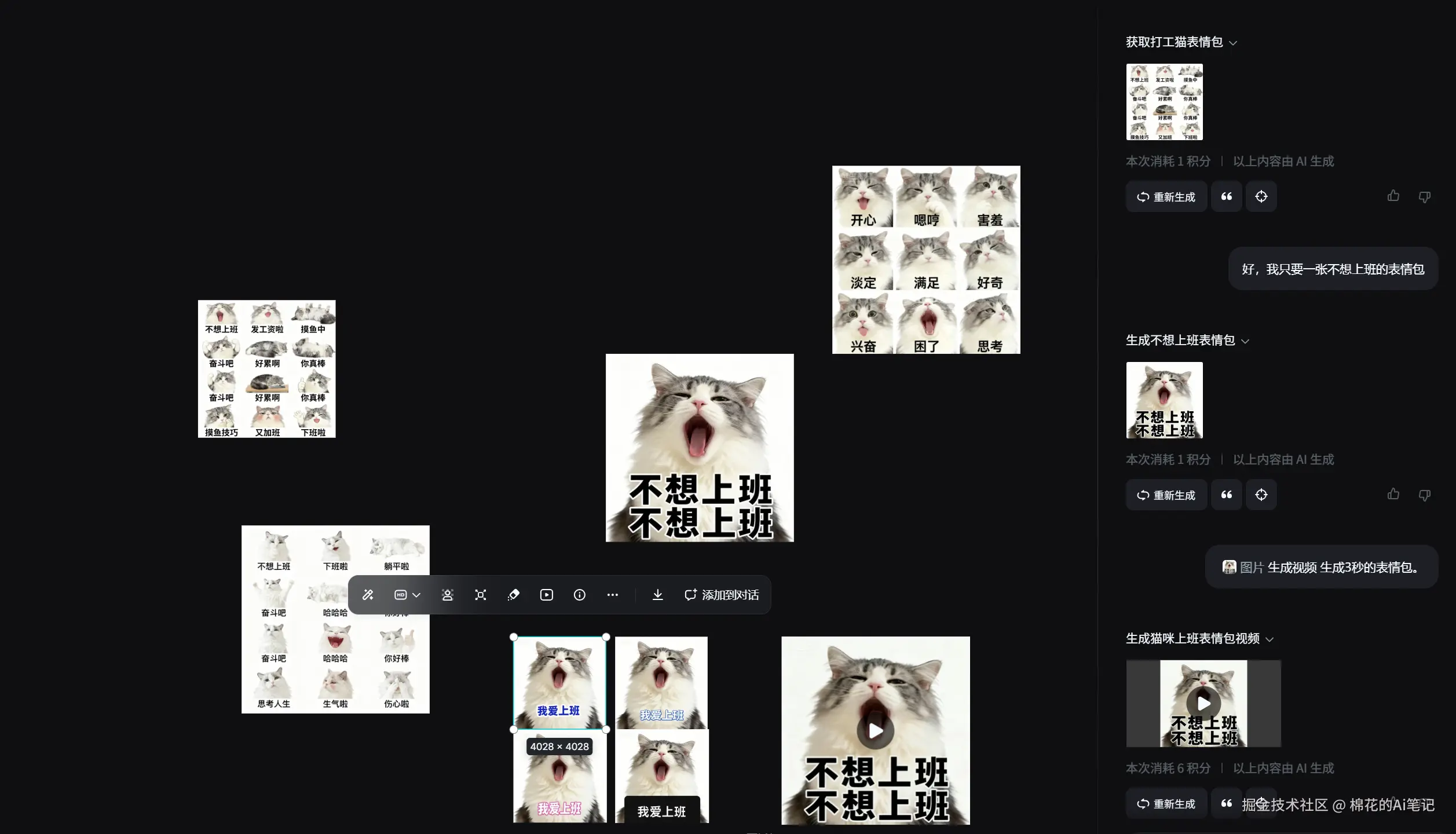 多生成几次,就集齐一整套“猫咪日常”贴纸系列,