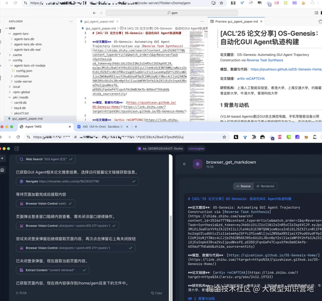 后续,我们将围绕稳定性、可观测性与生态集成持续打磨,不断完善评测体系与最佳实践,推动 AIO Sandbox 在更多大规模、高要求的 Agent 应用场景中实现稳健落地与高效运行。