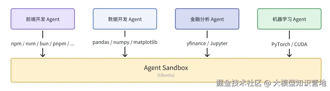 不同 Agent 在沙盒环境的预装包不同
