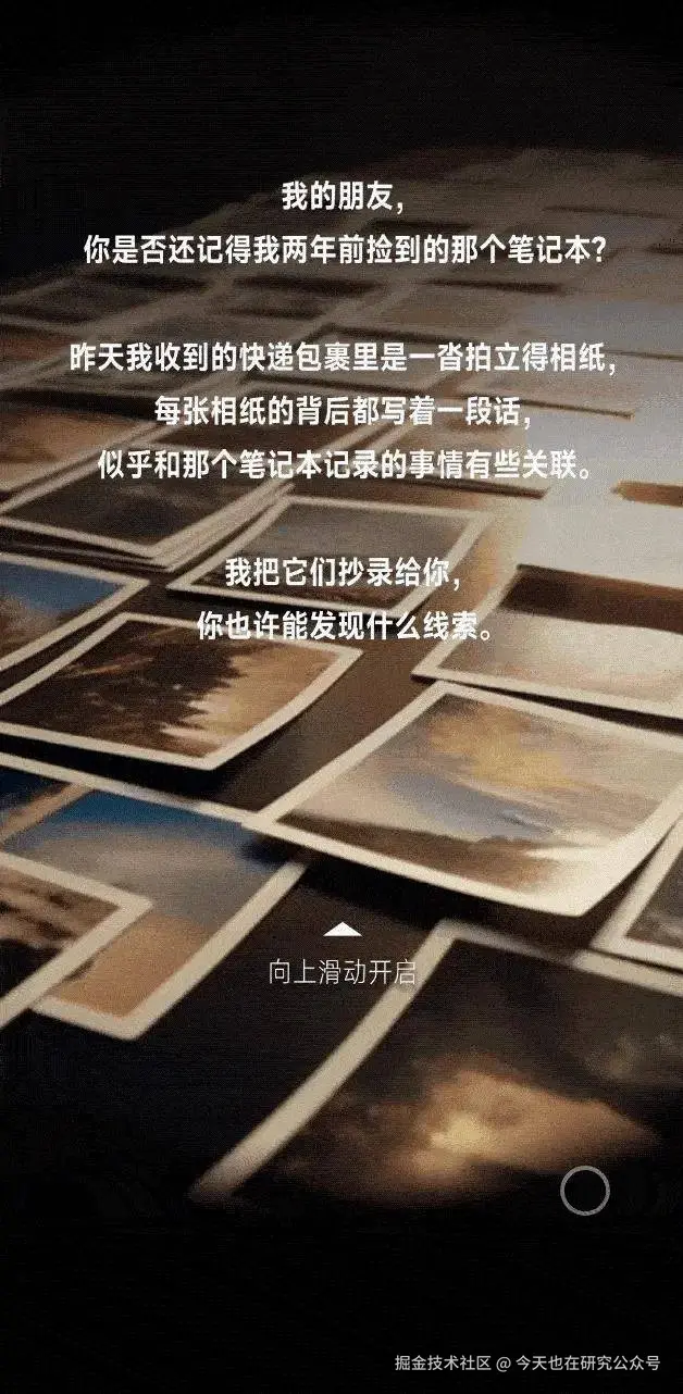 「视差滑动」造悬疑感:《纯属虚构:时间的秩序,崩塌在北大》把“裸眼3D”玩出了新花样!滑动时文字重组、画面破碎,还加了“浮层”模拟“眨眼窥探”的感觉,配合AI生成的图像,悬疑感拉满。原来视差滑动不只能展示美景,还能讲故事!