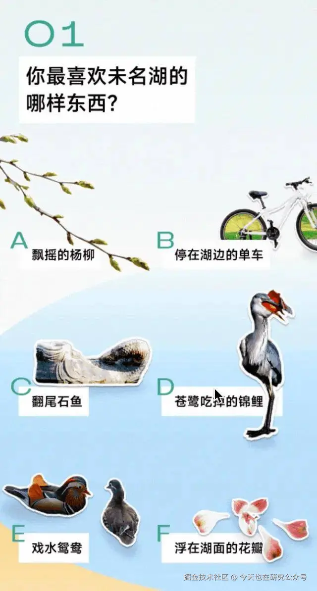 「自由布局」做互动选择题:《北大特饮,承包你的夏天!》更懂“用户参与感”——用自由布局组件列出未名湖的杨柳、翻尾石鱼、戏水鸳鸯,让大家选“最喜欢的景致”,看似简单却拉近了和读者的距离,关键是这个组件想象力空间超大,换个主题就能用!