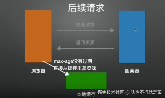 Expires或Cache-Control:max-age指定)直接使用本地缓存,不向服务器发送请求。 - 特点:无需请求服务器,性能最高。
