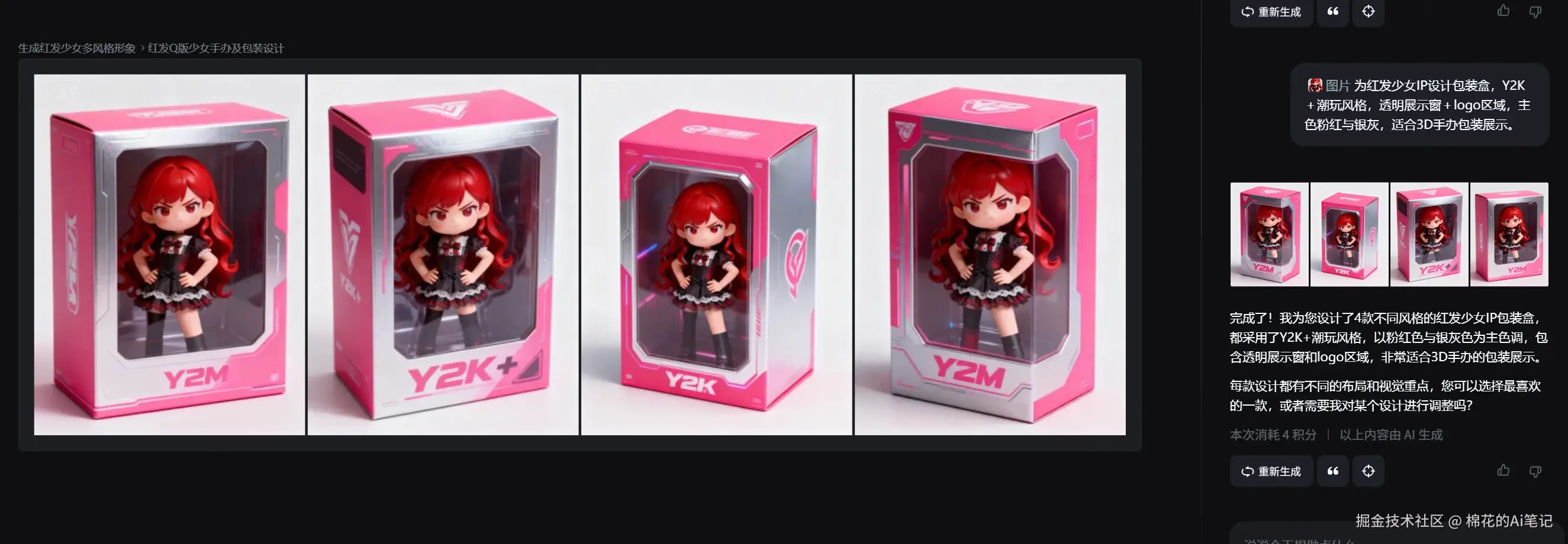 AI几秒后就给出了几款包装设计: