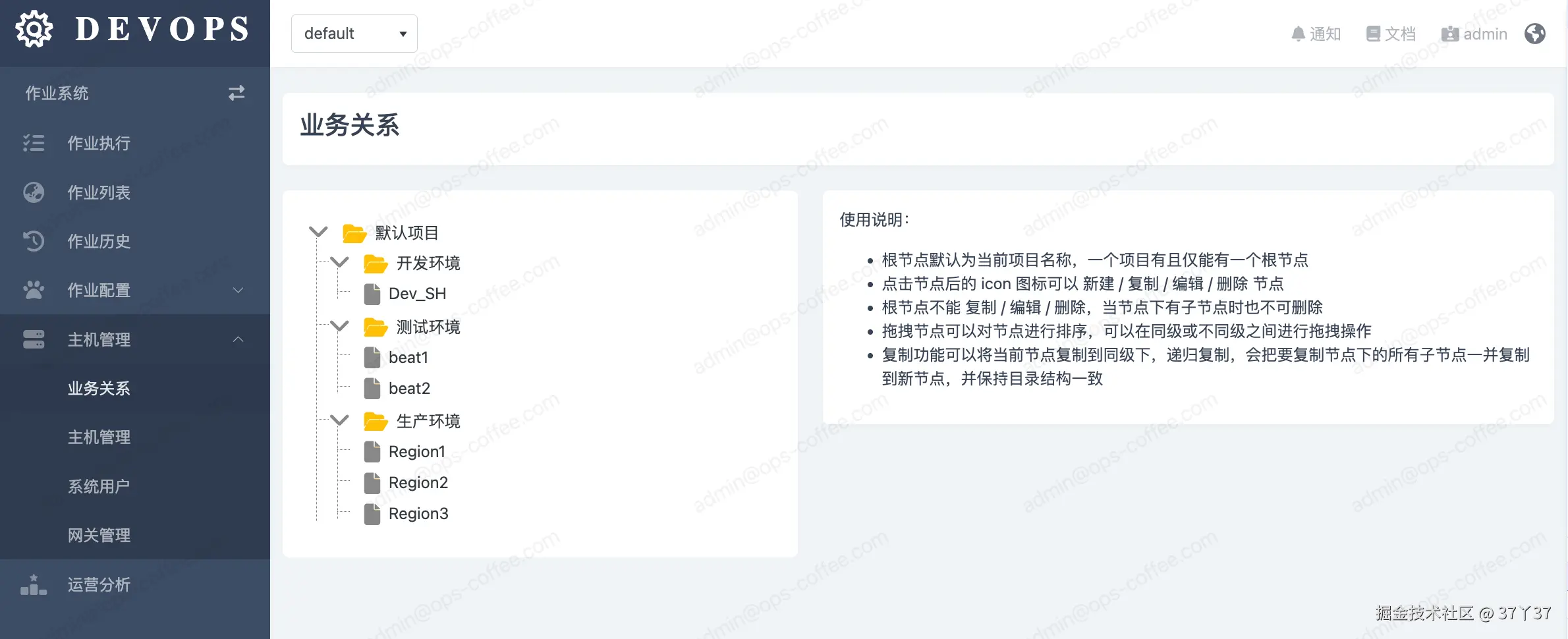 集团-事业部-项目-环境)。用户在执行作业时,可以直接选择一个业务节点,平台会自动选中该节点及其所有子节点下的全部主机,实现面向业务的批量操作。 -