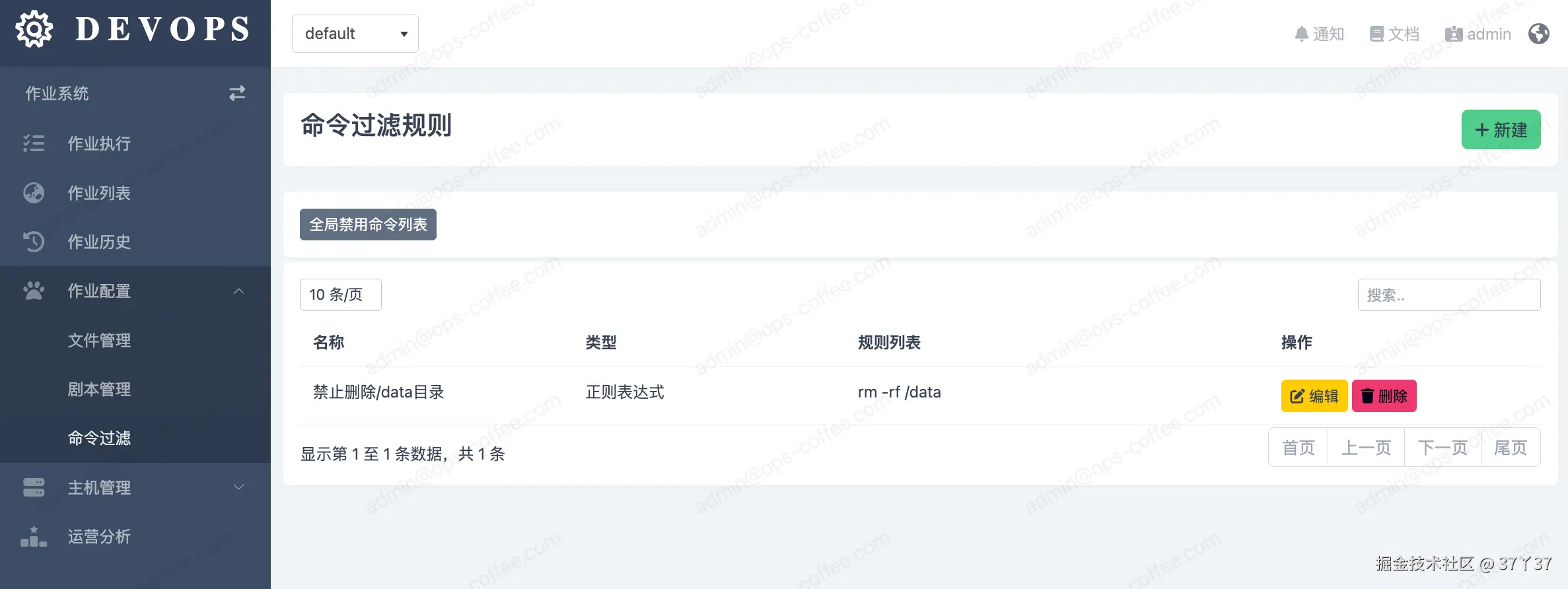 rm -rf /)。在作业执行模块中,如果用户输入的shell或command参数命中了任何一条规则,执行将被立即阻止。 -