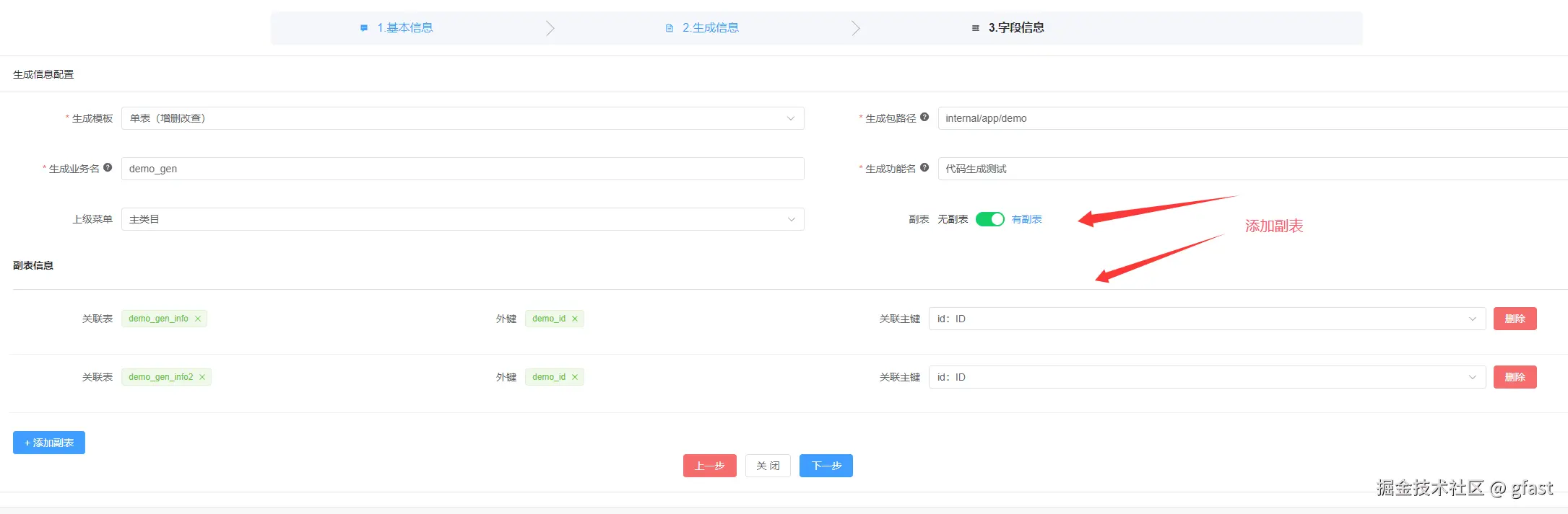 - 代码生成副表支持
