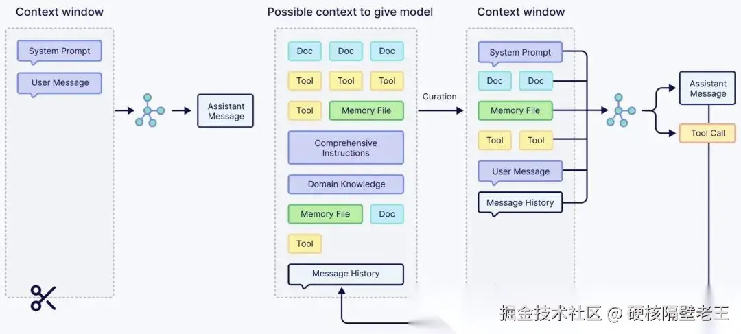 核心理念: 上下文工程是设计架构的学科,在正确的时间向LLM提供正确的信息。这不是改变模型本身,而是构建连接模型与外部世界的桥梁。