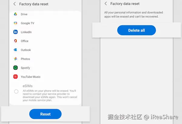 在以旧换新旧安卓或iPhone手机之前,清除数据不仅仅是建议,更是必须。现在,您可以按照上述指南轻松清除安卓手机或iPhone上的所有数据。您还可以了解恢复出厂设置和数据擦除的区别。虽然内置的恢复出厂设置功能对大多数用户来说已经足够有效,但像iReaShare Android Data Eraser和iPhone Data Eraser这样的工具可以提供额外的安全保障,让您更加安心。