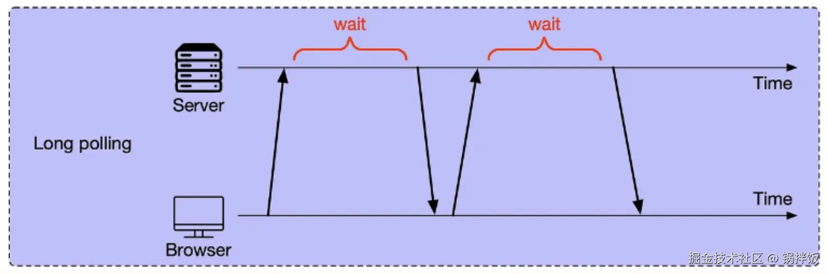 客户端发送HTTP请求后,服务端挂起连接直到数据更新或超时,返回响应后,客户端立即发起新请求。