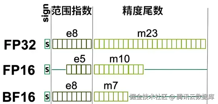 半精度本质是使用16个bit来表达Float32的数据,所以它的空间只有原来的1/2。通常意义上来说,半精度特指FP16(Half-precision Floating Point),本文主要从内存成本角度出发,故而将BF16(Brain Floating Point 16)也描述为“半精度”。这两种16位浮点数,具有不同的数据特征: