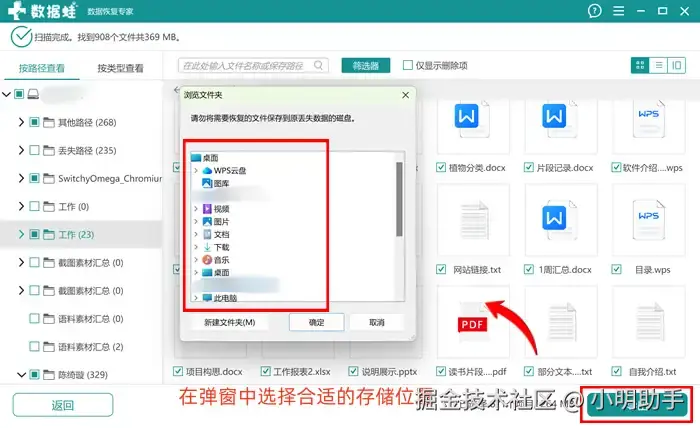 步骤3: 按下【导出】后,我们可以选择合适的位置去存放恢复文件,切记不要选择原位置进行保存哦。