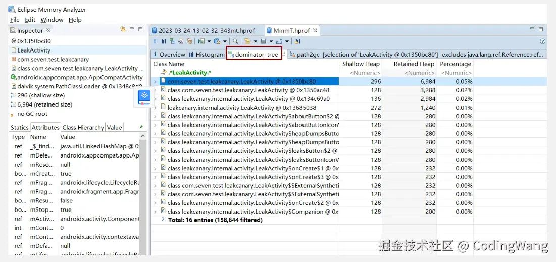 1.dominator去查看分析对象的引用关系。