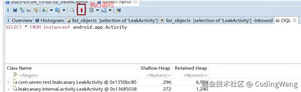 Retained Heap:对象自身占用的内存+对象引用的对象所占用的内存