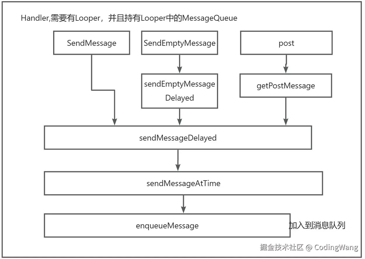 往发动机中发送消息,可以初始化发动机,但是在单个线程中,发动机只能初始化1次,他也是发动机消息执行回调的承载,但是回调执行的线程是由发动机在那个线程创建决定的,并非是完全由Handler决定。