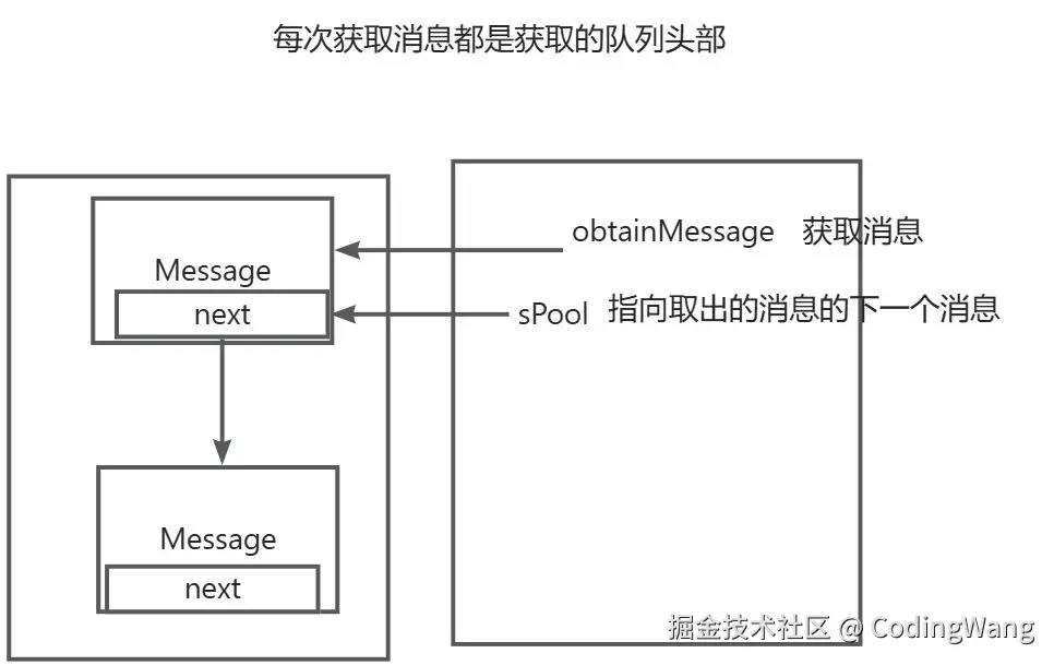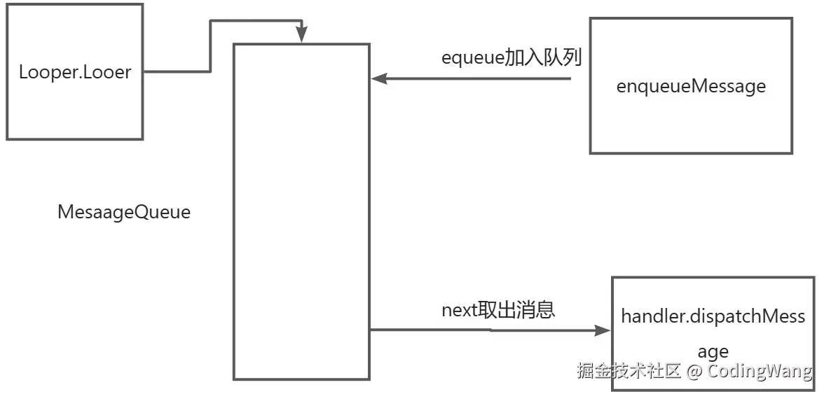 MyMessage next = myMessageQueue.next();//拿不到消息就会阻塞在这里