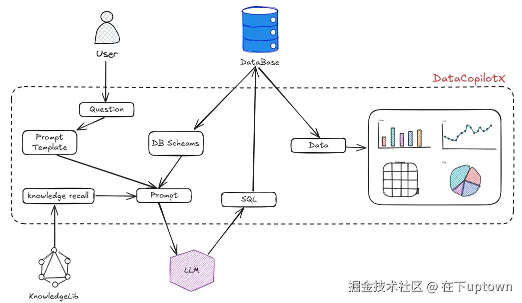 所以为了解决非技术人员也能写出符合需求的SQL并用图表展现出来,智能问数应运而生。核心业务价值在于让用户通过自然语言获取符合预期的数据指标并渲染为图表。 可以简单的理解为AI + BI。