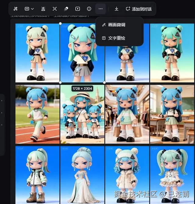 IP人物批量做变装,最怕改服装丢了核心风格。但用即梦的无限画布配合生成功能,就能轻松搞定,还能快速落地不同场景需求。