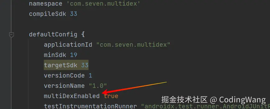 我们在开启一个子线程,帮助我们去加载dex,但是这个需要确保我们要呈现的类在主dex中,并且当我们进到app中相对应的dex一定是加载完成了,我们可以通过如下配置来确保。