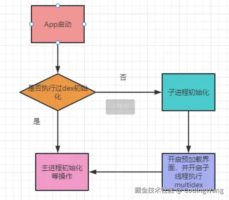 - 在application中的attachBaseContext中通过文件标识,作为判断MultiDex是否加载完的条件,注意只有主进程才去做相关操作;