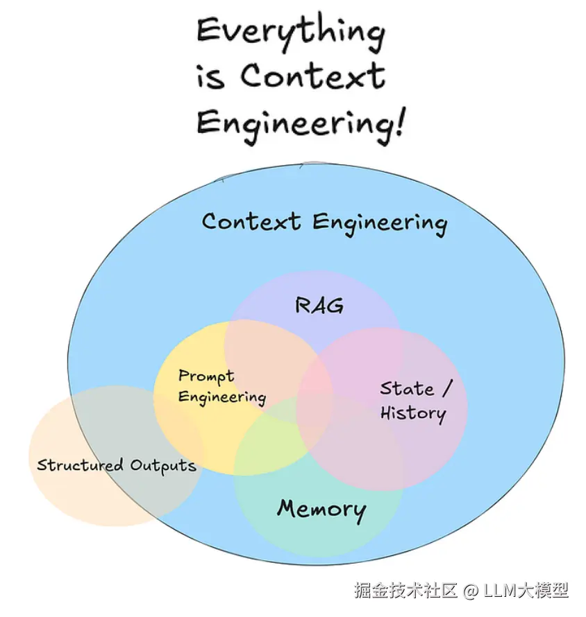 至此,虽然RAG还没有写到,但是关于上下文工程、提示词工程、RAG和记忆几个概念之间的关联关系已经开始明晰,上下文工程是一个相对而言大的范畴,也即 “Everything is Context Engineering!”
