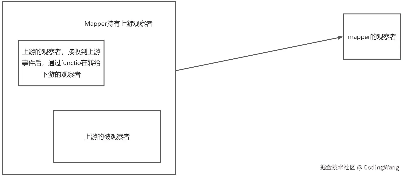 1.捋清楚套娃的关系,我们的线程切换的被观察者持有的是mapper这个被观察者的引用,而mapper被观察者中又持有create操作符创建的被观察者。