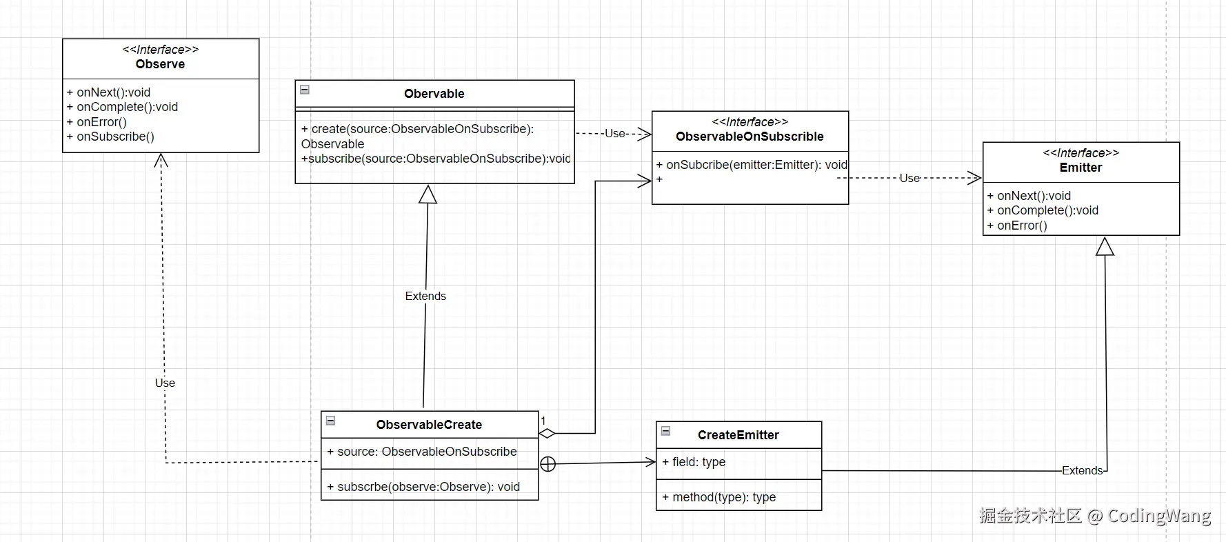 2.事件接口(实现类存在在框架中,create调用时会调用到observe方法)