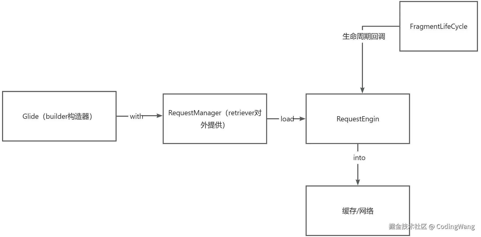 2.我们继续看下load方法,主要就是requesetManager中的load方法,我们可以看下感知生命周期的RequesetManager这个类,调用load方法时其实就是调用requestEngin中的load方法,并且返回了这个requestEngin这个对象,这里其实只是做些加载准备;