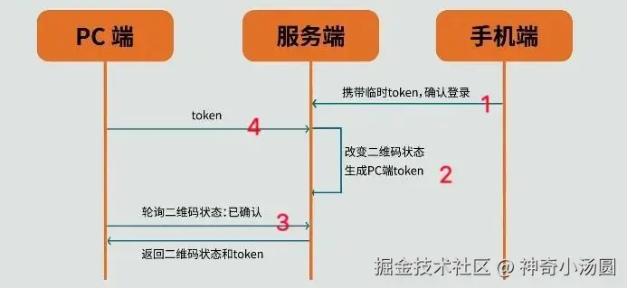 - 当手机端确认登录时,它就会生成 PC 端用于登录的 token,并返回给 PC 端