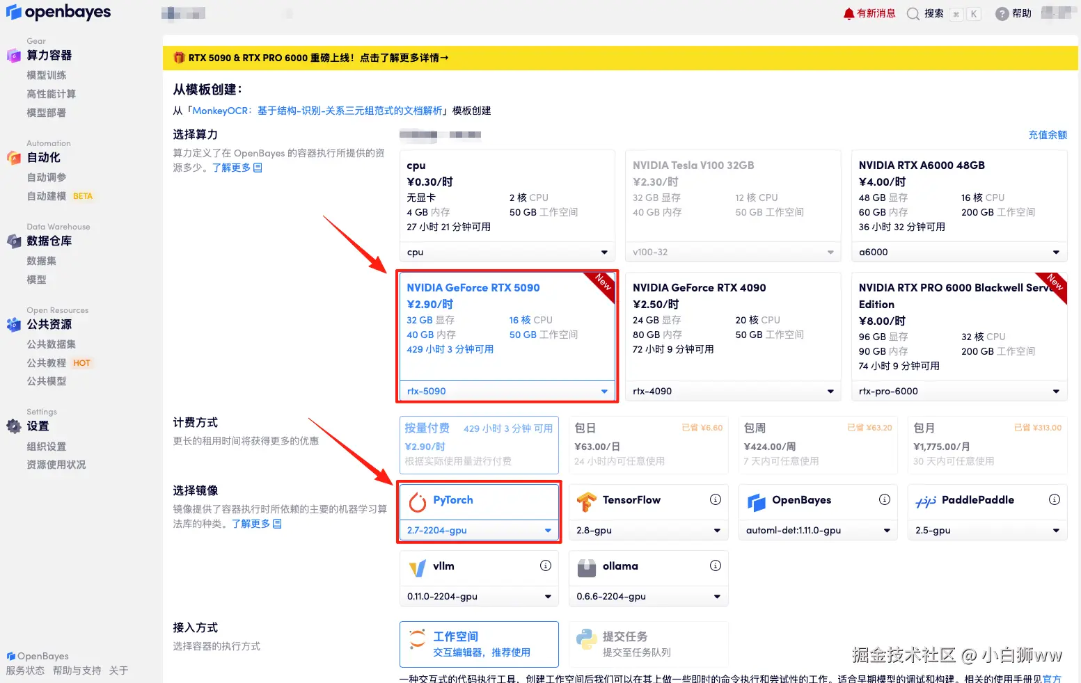使用云平台: OpenBayes