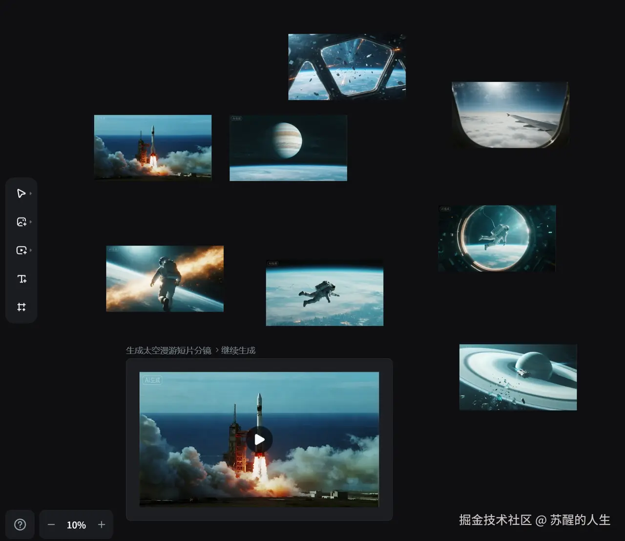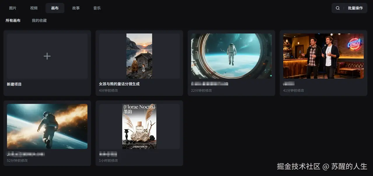 这就是即梦AI全新升级的无限画布功能,之前已介绍过。