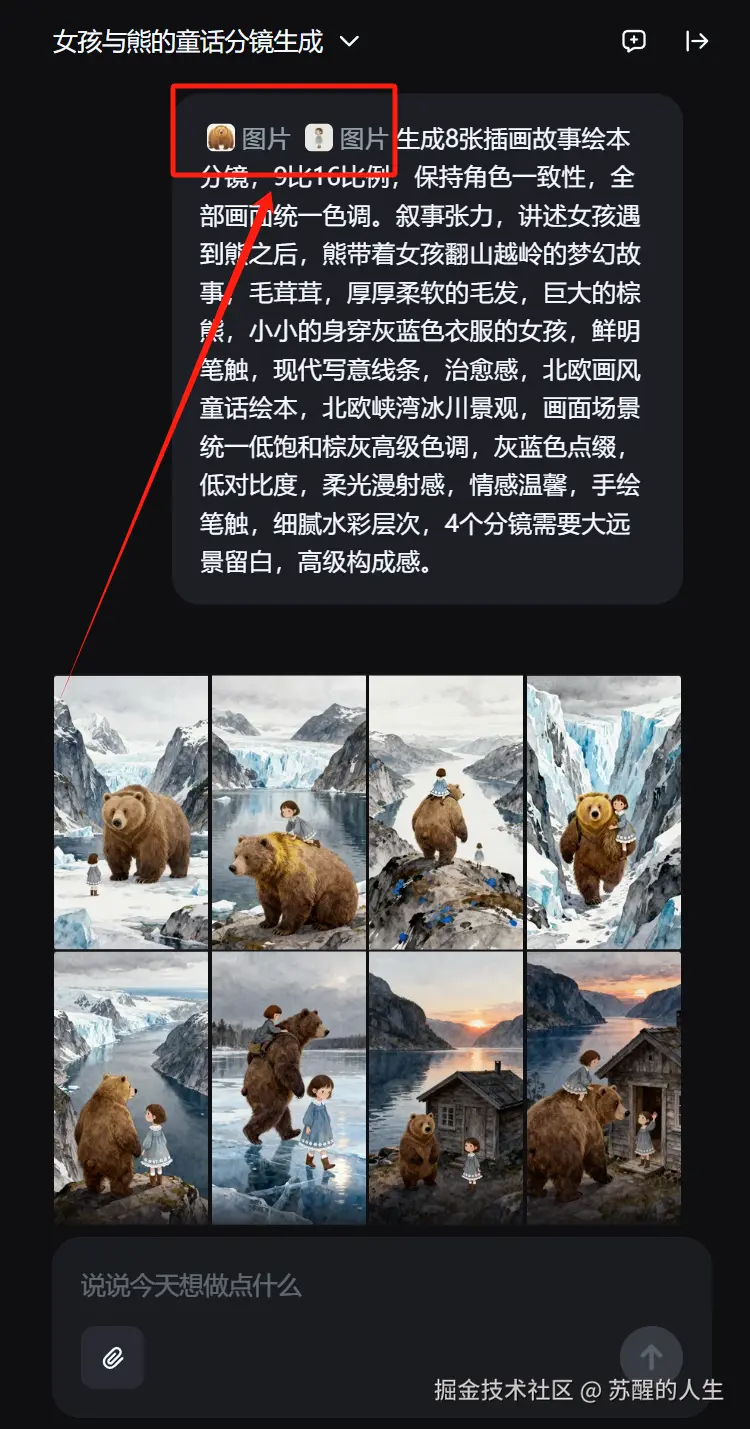 先对话碰撞灵感,再出图,也可以直接让AI生成分镜图片,再延展成动态镜头。
