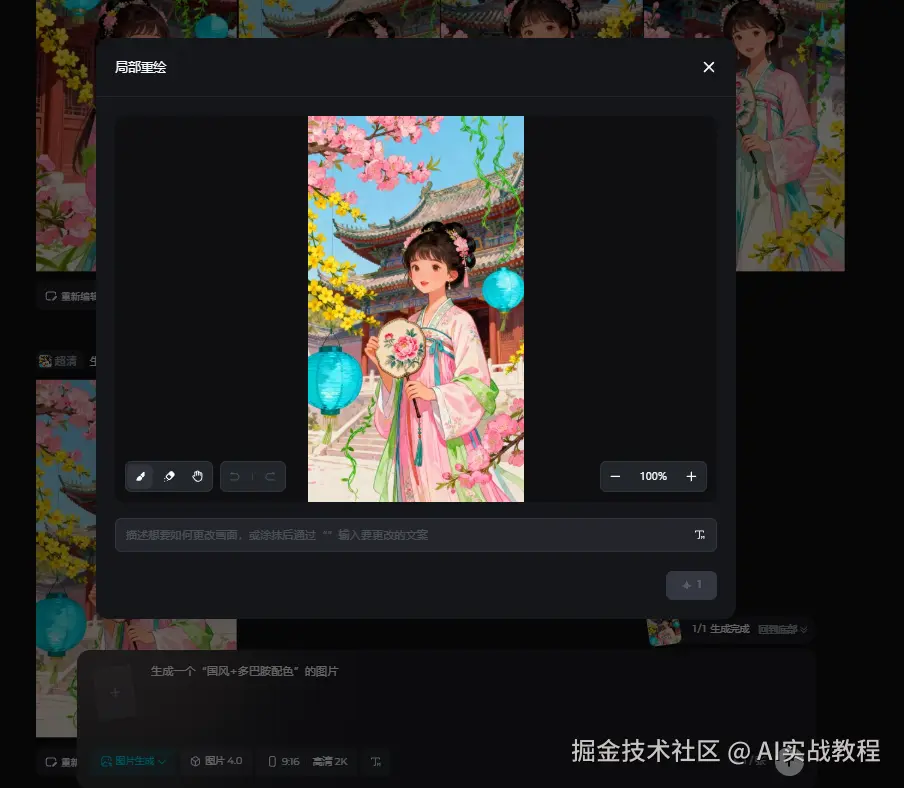 - 自带“一键抠图”“智能扩图”“局部重绘” ,封面字写错了不用返工,直接框选重生成。