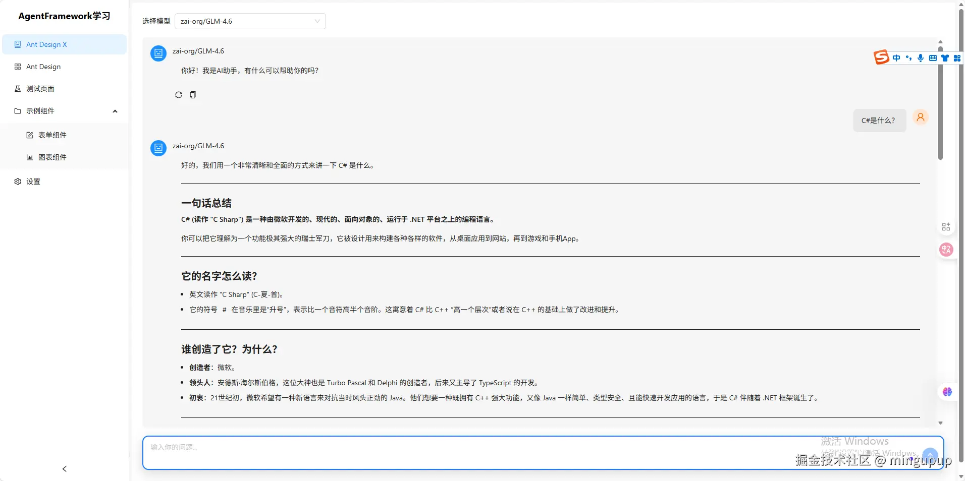 目前使用Ant Desgin X做了一个简单的AI聊天界面了,自己用AI写的组件的质量跟大厂写的肯定是不能比的,既然大厂都做的这么好了,直接用大厂做好的轮子就行了。