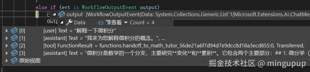 else if (evt is WorkflowOutputEvent output)