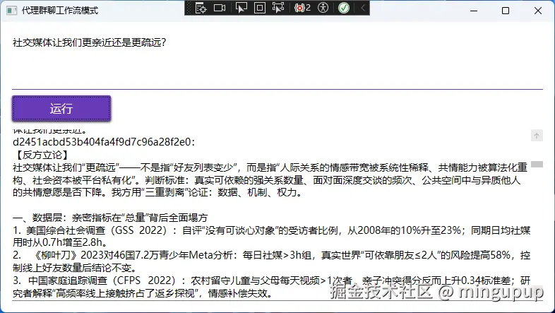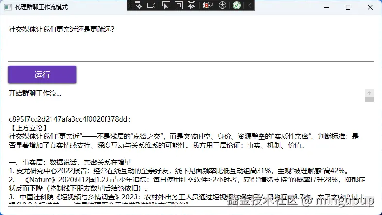 Groupchat模式就是开启一个AI群聊,我拿辩论举个例子。