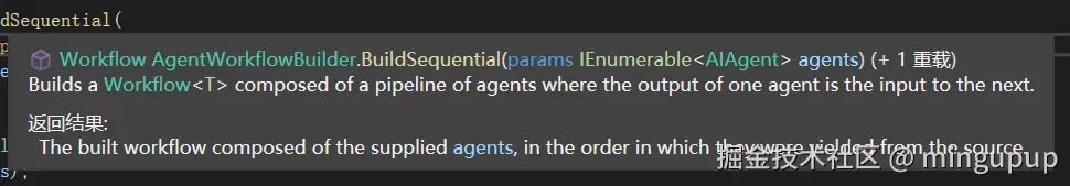 参数就是一组AIAgent,然后工作流会将这些AIAgent按顺序组合起来。