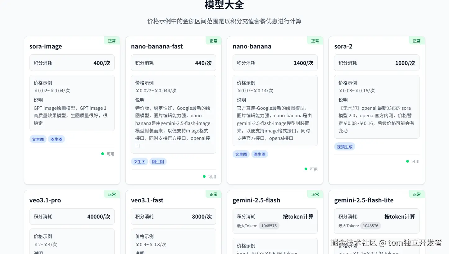 - Gemini-2.5-Pro(满血不截断)——输入1.25/M,输出6.25/M