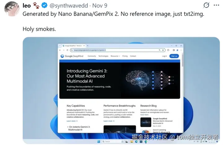 这次的Nano Banana 2 (GemPix2)可能基于更强大的Gemini 3.0系列构建,可以将它视为整个系统的推理核心——一个能同步理解文本、图像与结构化信息的多模态大模型,在其基础上叠加扩散模块实现图像生成。虽然这种混合架构在概念上并非首创——OpenAI 与 Anthropic 都曾透露过类似构想,但这可能是首个面向用户落地的商业化规模版本。