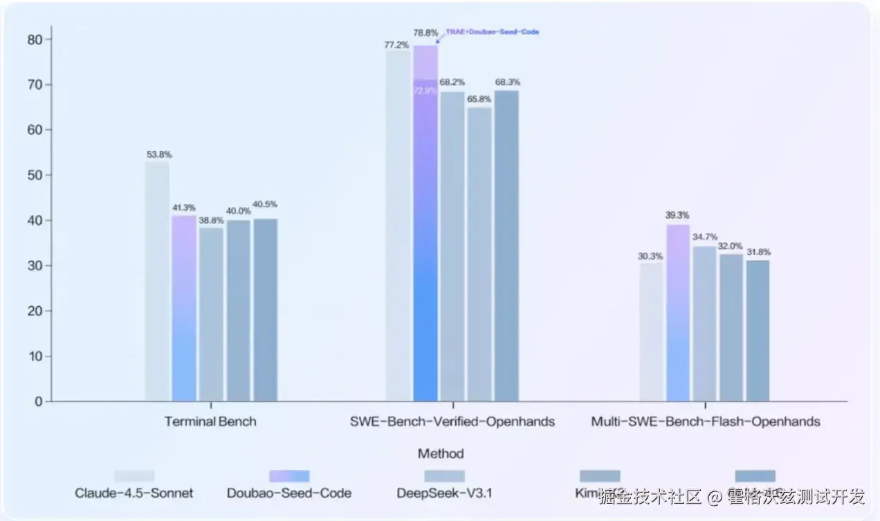 在 SWEBench Verified 榜单上,Doubao-Seed-Code 与 TRAE CN 企业版结合后的成绩 **78.8%**,直接登顶 SOTA。