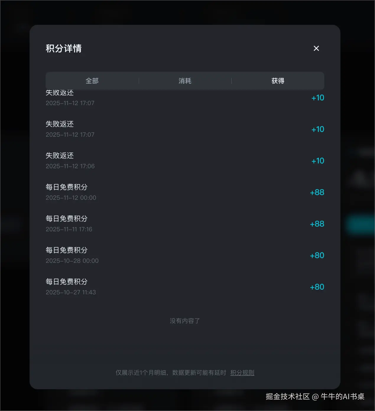 这不是那种“试用三天”的套路。它不搞订阅制,对比那些动不动就要你开年费的模板网站,即梦AI采用了更友好的积分制。