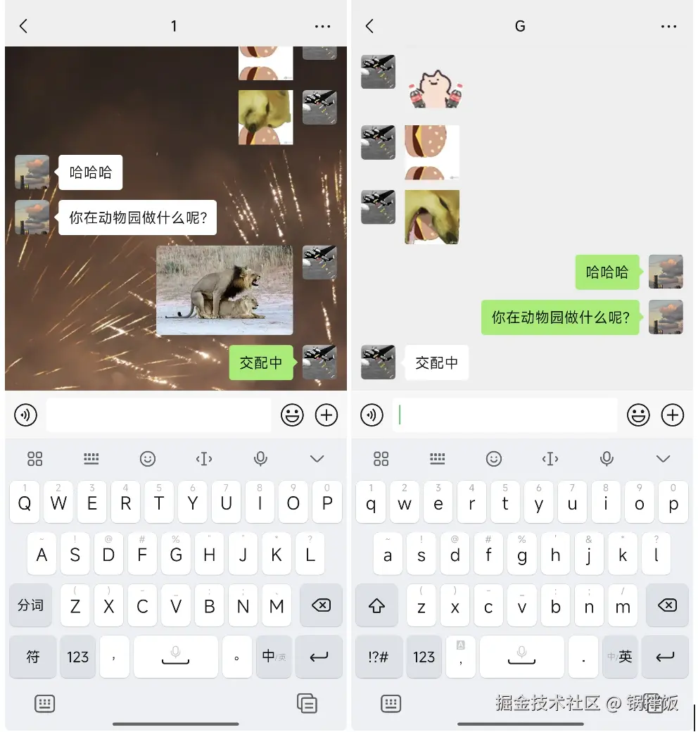 下图中,你的回复是图片+文字,但是对方只收到了“交配中”的文字,会让对方感觉很抽象。