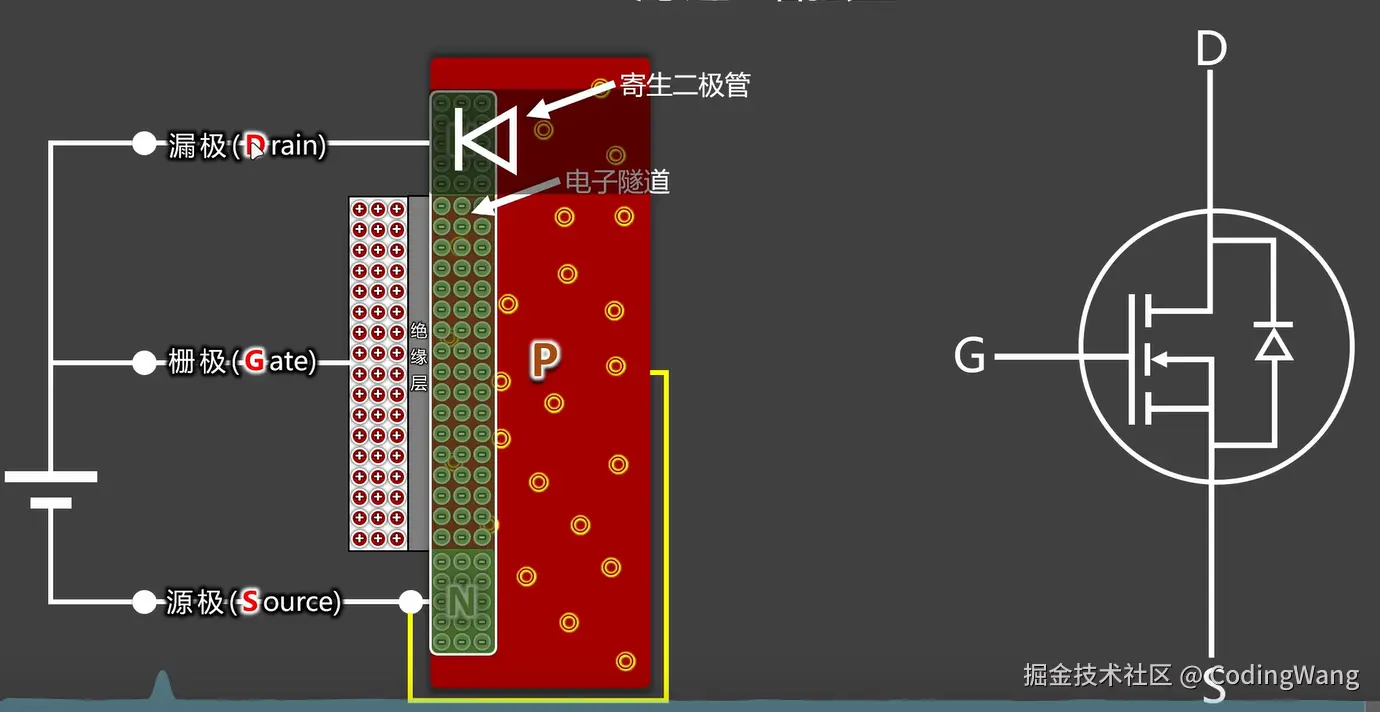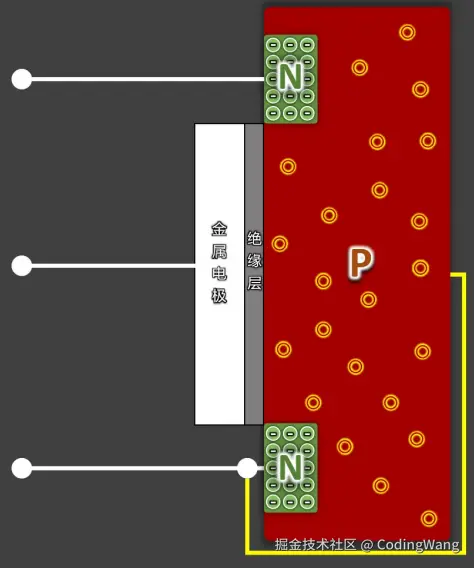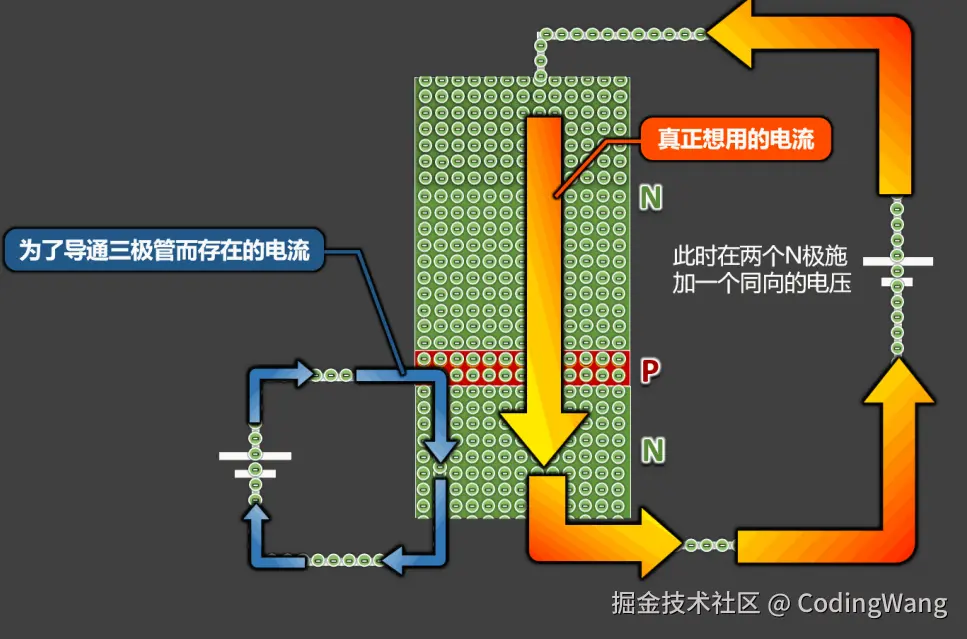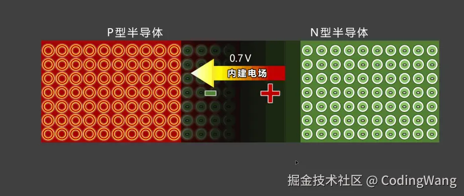 的存在,阻⽌了更多的电⼦从N区扩散到P区,于是中间就形成了⼀层“耗尽区”。