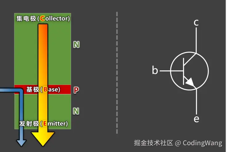 ⼩,当外部电场强度继续变⼤时,就可以抵消掉内建电场,PN结被导通,随后N区的电⼦,完全