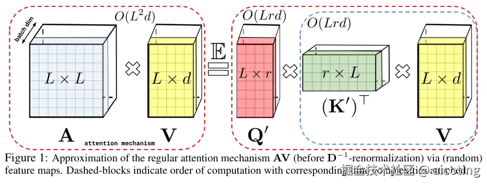 核心技巧是把 Softmax(QKᵀ) 换成一个核函数形式: