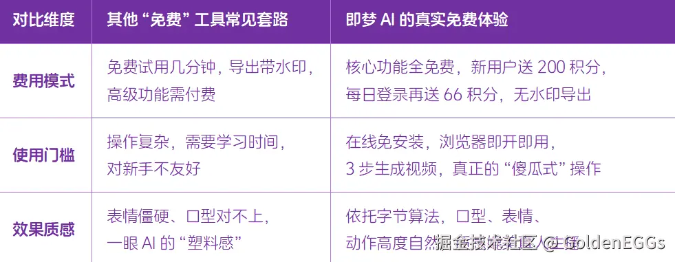 市面上很多数字人工具打着免费的旗号,实则处处是限制。我们来做一个对比性分析,看看即梦AI的诚意在哪里: