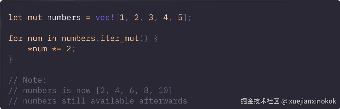 iter_mut() 方法允许你遍历集合,同时为每个元素提供可变引用。