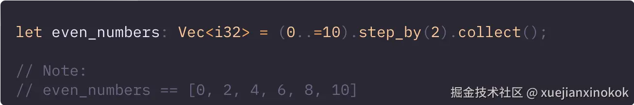 由于 Rust 中的迭代器具有惰性,因此需要将其转换为特定类型才能产生结果,这通常使用诸如 collect() 之类的内置方法来实现 。