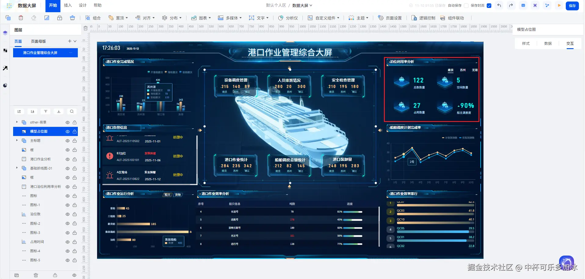 通过对港口作业分析大屏的完整搭建,我们充分体验到smardaten平台在数据可视化大屏开发中的显著优势: