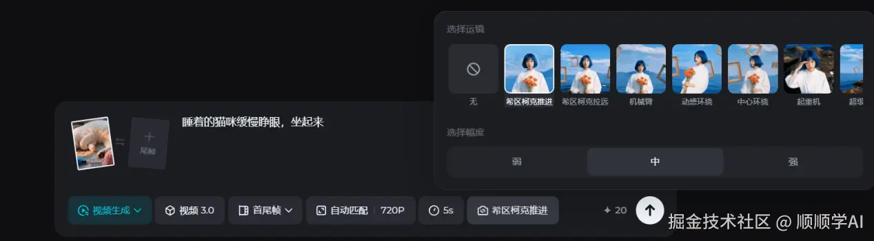 运镜:选 “缓慢推近”(支持推近、旋转、平移 3 种基础运镜);