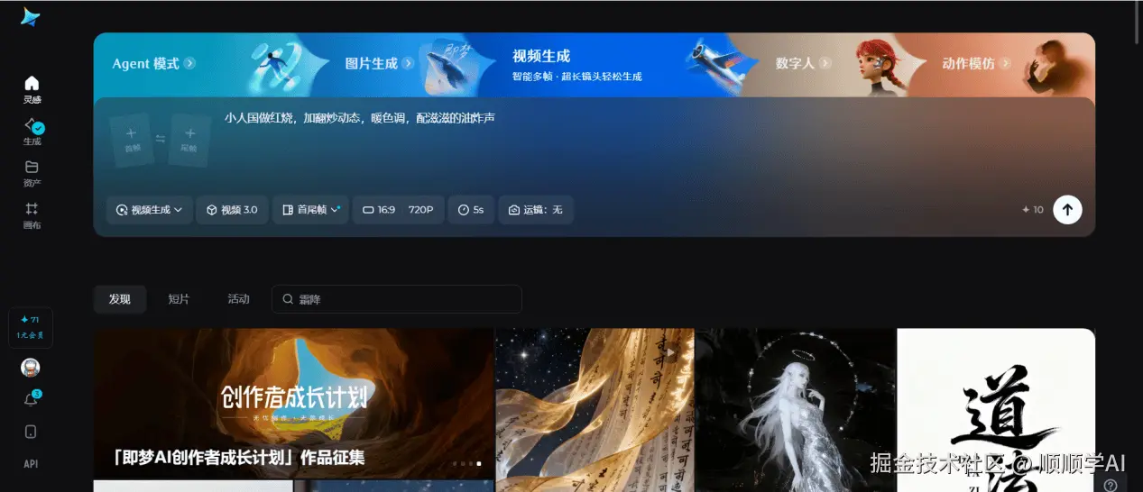 除图生视频外,工具还搭载智能画布、配音等实用功能,完美适配短视频创作需求: